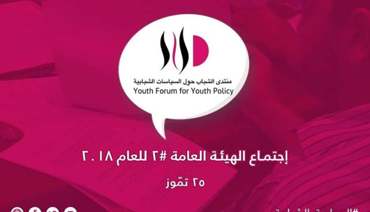 عقد منتدى الشباب اجتماع الهيئة العامة الثاني للعام 2018 في بيروت بمشاركة 13 مؤسسة من تلك المنضوية في المنتدى، هي: شباب العزم، اتحاد الشباب الوطني، جمعية العناية الصحية، منظمة الشباب التقدمي، قطاع الشباب في التيّار الوطني الحرّ، مكتب الشباب والرياضة في حركة امل، قطاع الشباب في الحزب الشيوعي اللبناني، جمعية شباب المشاريع، رابطة الطلاب المسلمين، مؤسسة الصفدي، الاتحاد اللبناني للاشخاص المعوّقين حركياً، مصلحة الطلاب في حزب القوات اللبنانية، وجمعية مسار.